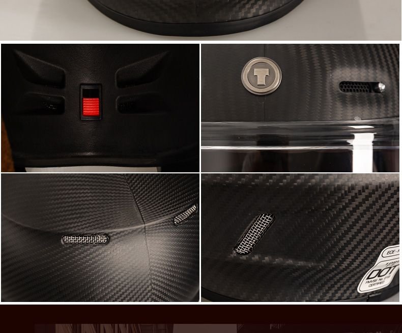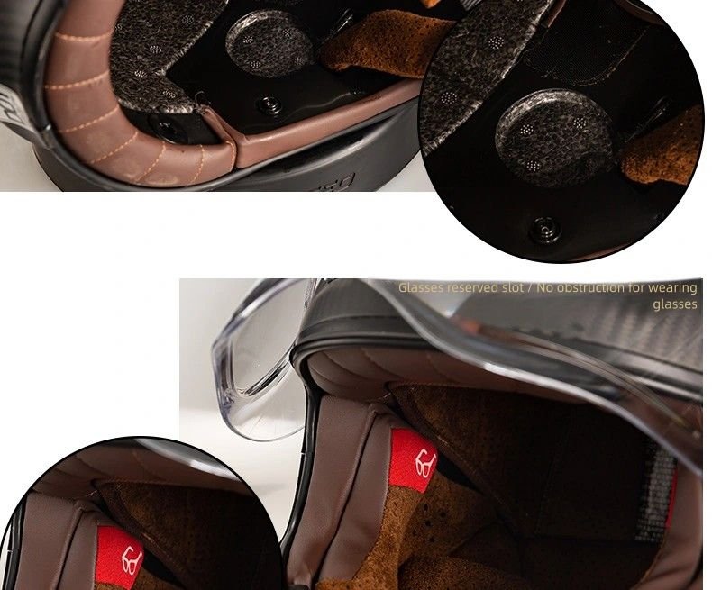 Le carbon fiber full face helmet is built for riders who demand safety, comfort, and style in one package. Constructed with aerospace-grade carbon fiber, it offers exceptional impact resistance while staying lightweight for long rides. Certified for safety and designed with a retro flair, this carbon fiber hard hat is the ideal choice for riders who want both protection and personality on the road.