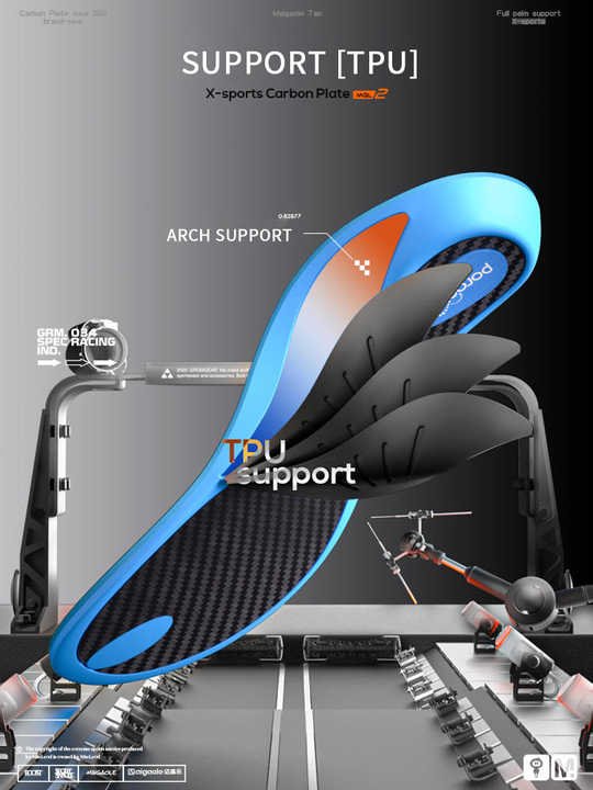 carbon fiber plate+TPU+ PU+ PORON+BK mesh