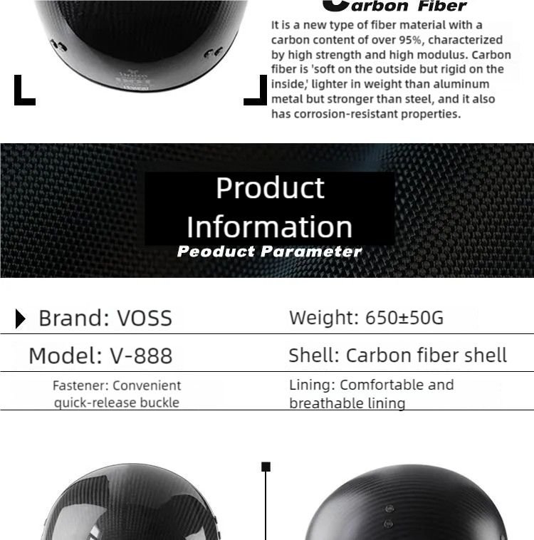 The VOSS VS-888 Carbon Fiber Helmet offers a perfect blend of safety, style, and comfort. Made with a handmade carbon fiber shell and equipped with a convenient built-in sun visor, this helmet meets DOT safety standards. Its ergonomic design and lightweight build make it an excellent choice for daily commuters and urban riders.