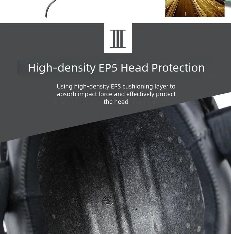 A: The outer shell is handmade carbon fiber, with an ABS reinforcement layer and EPS inner liner for impact absorption.