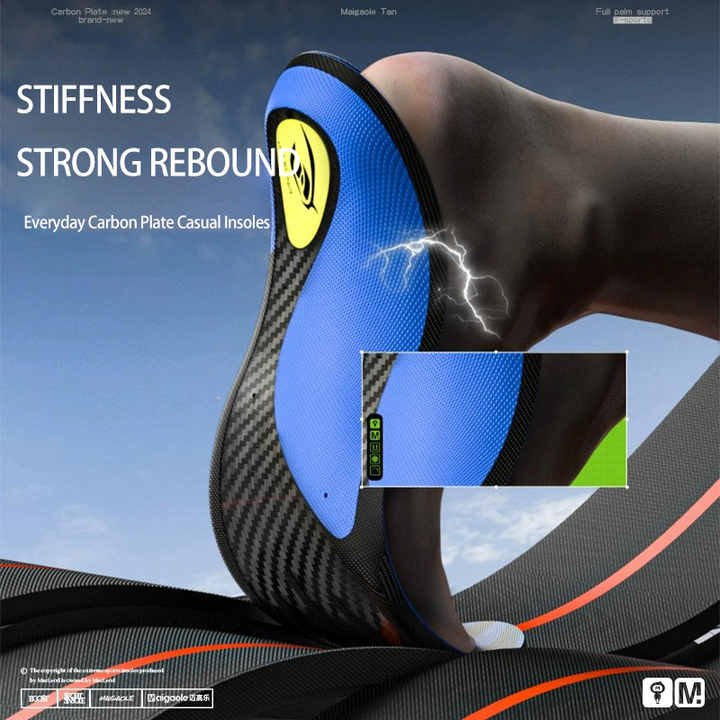 Made to fit seamlessly into your running shoes, the carbon fiber insoles are engineered for long-lasting use, ensuring both comfort and resilience as you build your running routine. The full palm rebound helps absorb shock, allowing for smoother, more comfortable strides, making them an essential addition for any runner looking to improve their form and endurance.