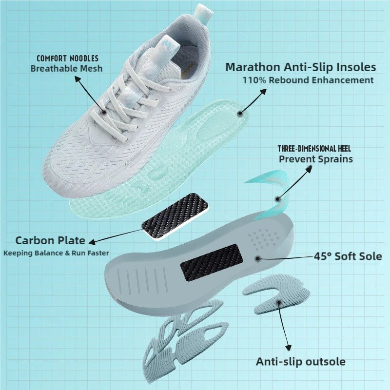 ✔️ Performance Boost – The carbon plate optimizes propulsion, improving speed and endurance