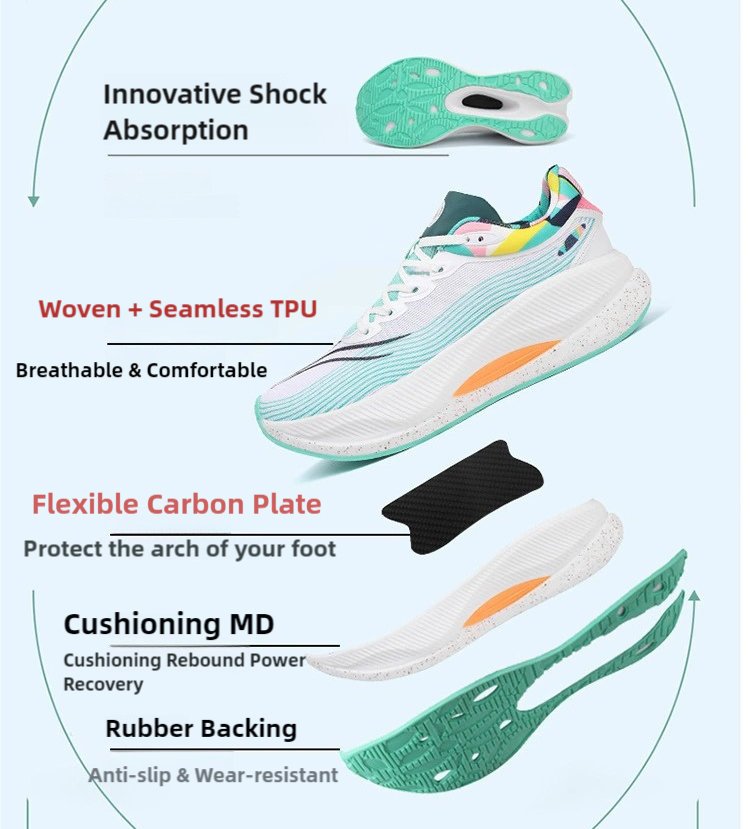 Elevate your running experience with our Carbon Plate Running Shoes, designed for both men and women. Featuring advanced carbon plate technology and excellent Shock Absorption, these lightweight shoes offer unmatched comfort and performance. Perfect for runners seeking speed and stability.