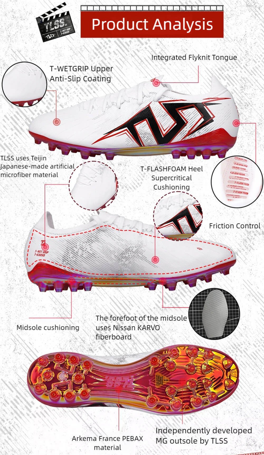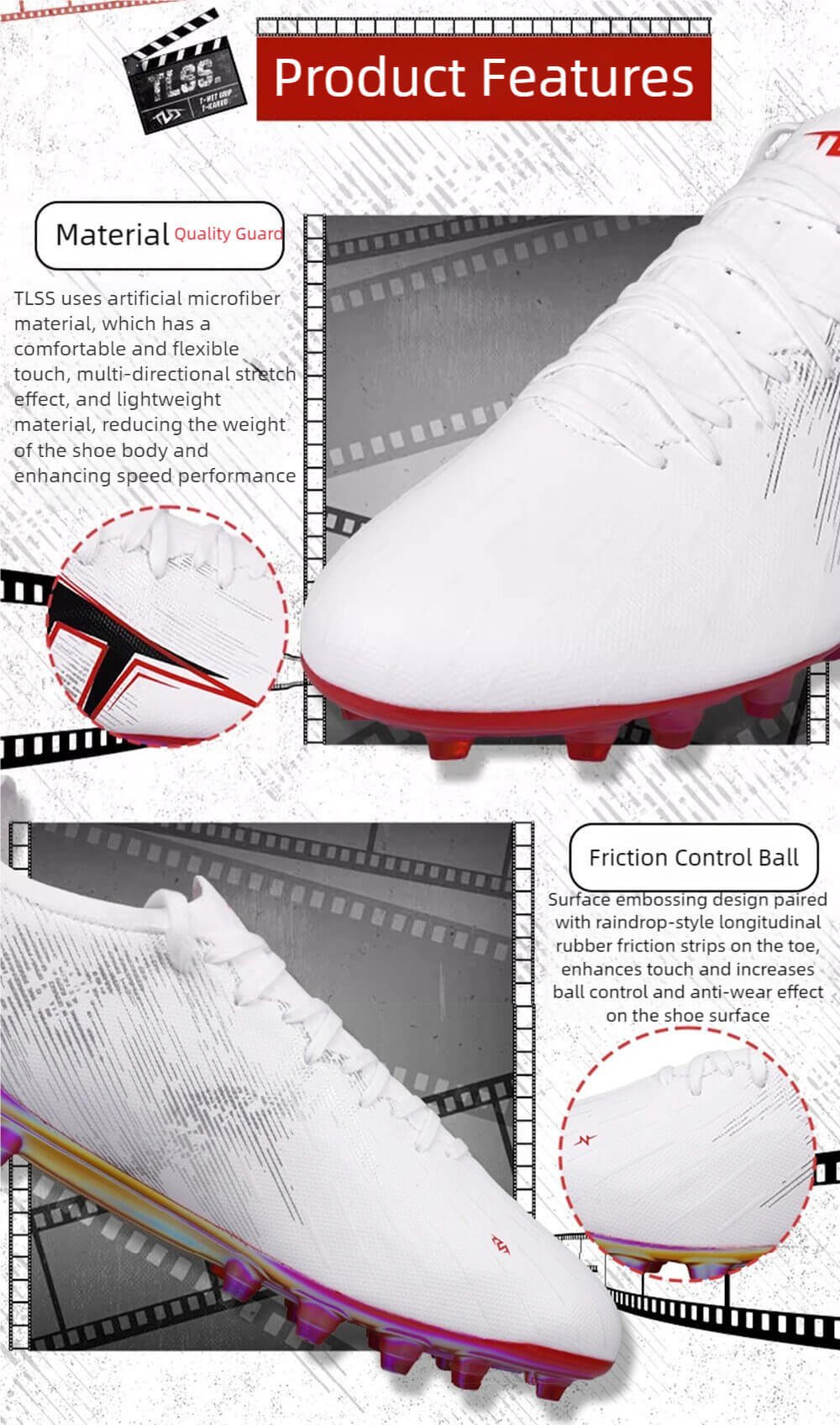 The TLSS Striker.711 MG soccer shoes blend cutting-edge technology with athletic design. Engineered for artificial turf, they offer exceptional cushioning, lightweight durability, and enhanced control for competitive play.