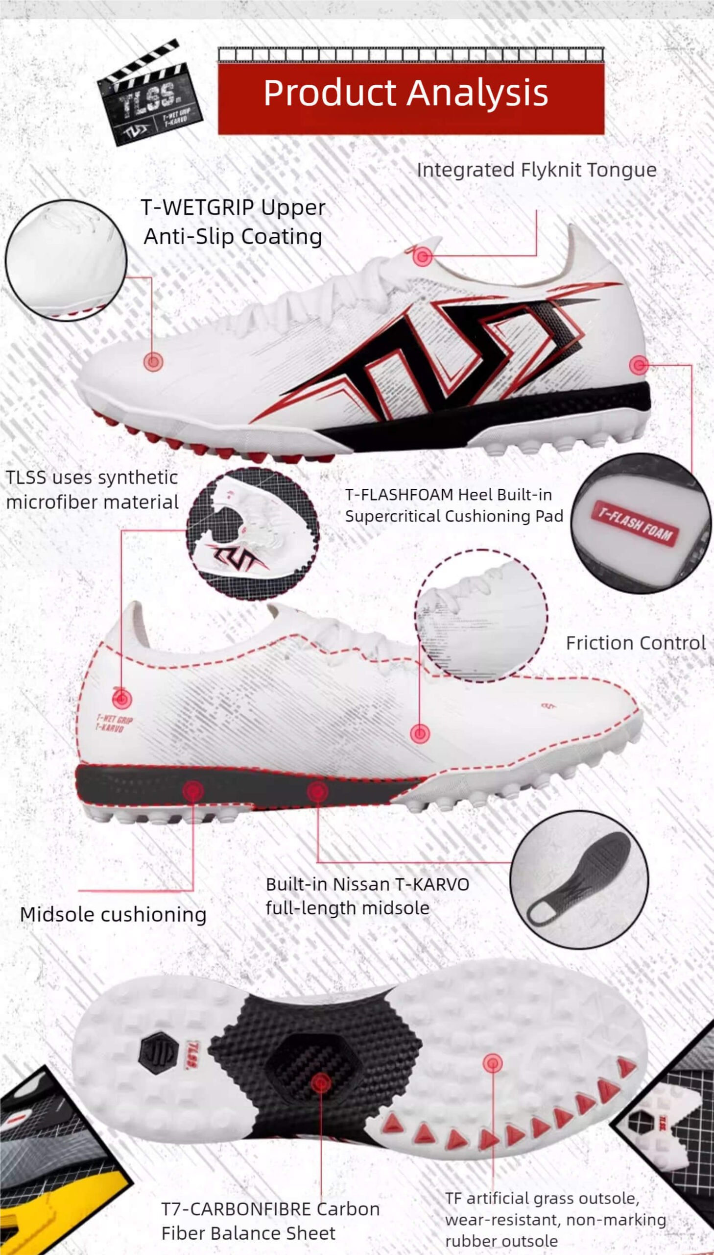 Designed for elite playmakers and sharp strikers, the TLSS STRIKER TF Soccer Shoes deliver game-changing agility and durability. Engineered with carbon fiber anti-torsion support, they provide enhanced foot stability, while the responsive midsole cushioning ensures maximum comfort through high-impact matches. Ideal for turf field performance, these spike shoes offer explosive traction, precise movement, and style backed by innovation.