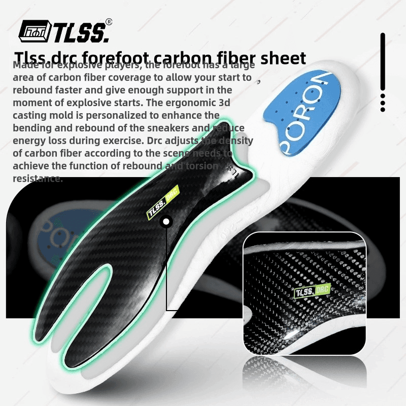 "Palmilhas de fibra de carbono TLSS de alto desempenho projetadas especificamente para jogadores de futebol. Apresenta absorção de choque, suporte de arco e conforto leve. Melhora a estabilidade e reduz a fadiga do pé durante jogos e treinamentos."